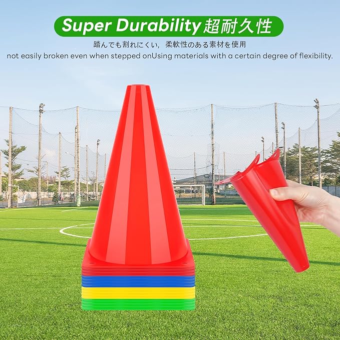 ✅高耐久性、破断しにくい:マーカーコーン良質なPE材料で作られ、柔軟性と弾力性があり、踏んでも迅速に回復できる。破断しにくく、繰り返し使用でき、非常に安全である。高さは18cmで、広い場所で使用すれば目立ちます。例えばサッカー場、大型運動場など。