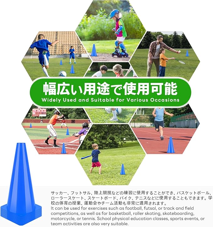 ✅カラーコーン ミニ用途が広い:サッカー、野球、テニス、陸上、ローラースケート、フットサルなどの各種スポーツに適用する。自転車やバイク、ドローンでの練習にも使えます。目標、距離、エッジ、境界マーカー、障害物、訓練速度、正確性、敏捷性を設定するために使用されます。学校、運動会、団体競技や部活の理想的な選択です。