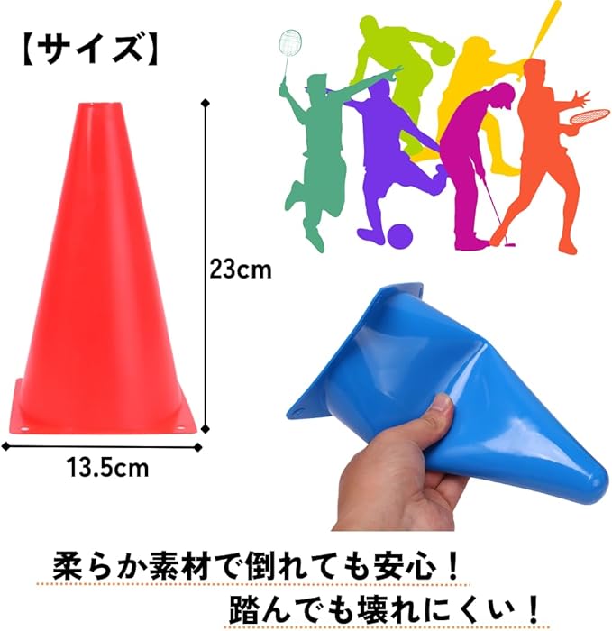 【多用途スポーツコーン】サッカー・野球・テニス・フットサル・陸上など幅広い競技や部活動、イベント・運動会の練習など、あらゆるシーンで活用できます。