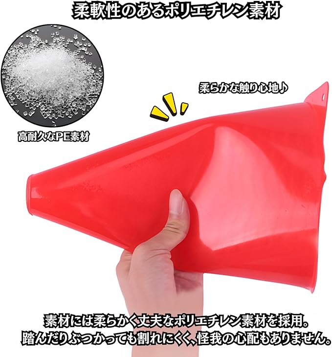 【柔軟性抜群のPE素材】柔らかく耐久性のあるポリエチレン素材を採用。練習中に踏んだりぶつかっても割れにくく、すぐ元の形状に戻ります。ソフトな素材で怪我もしづらいため、安心してお使い頂けます。