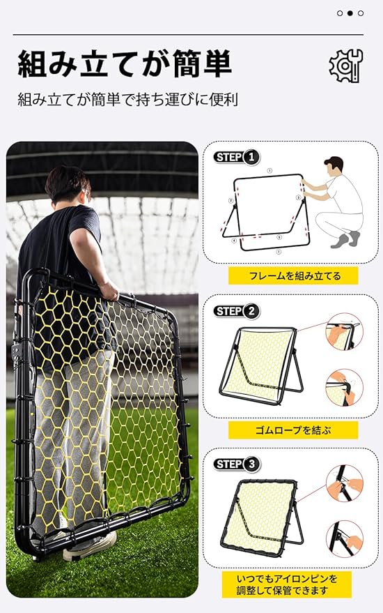 **迅速な組み立て、省時省力** 独自のデザインにより、組み立てが**簡単で迅速**になっており、数分で設置を完了できるため、貴重なトレーニング時間を節約し、すぐに練習に取り組むことができます。