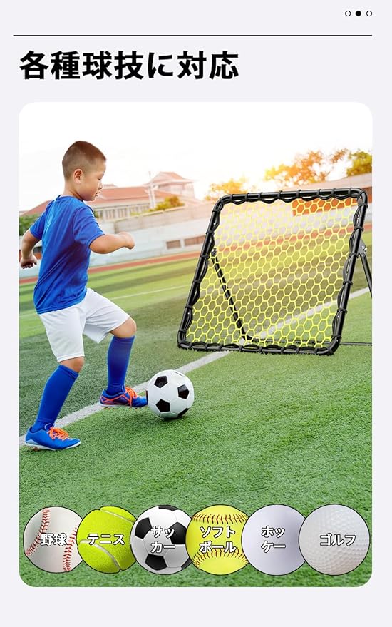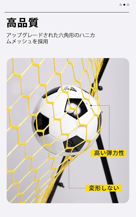 **超強固な安定性、あなたの挑戦に寄り添う** その超強固な安定性能により、風雨や高強度のトレーニングにも耐え、このリバウンドネットは常に安定しており、サッカー技術を向上させる理想的なパートナーです!