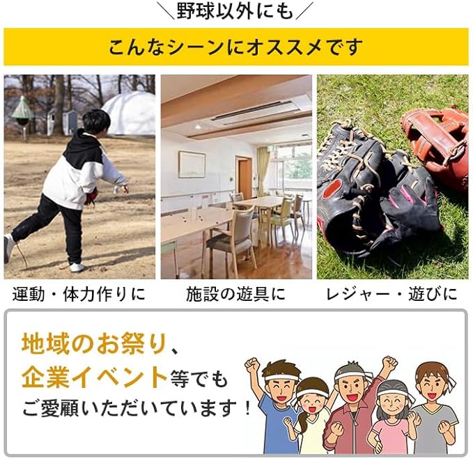 【野球以外にも】⚾運動・体力づくりに。施設の遊具に。レジャー・遊びに。地域のお祭り、企業イベントなど、さまざまなシーンでお楽しみいただけます。