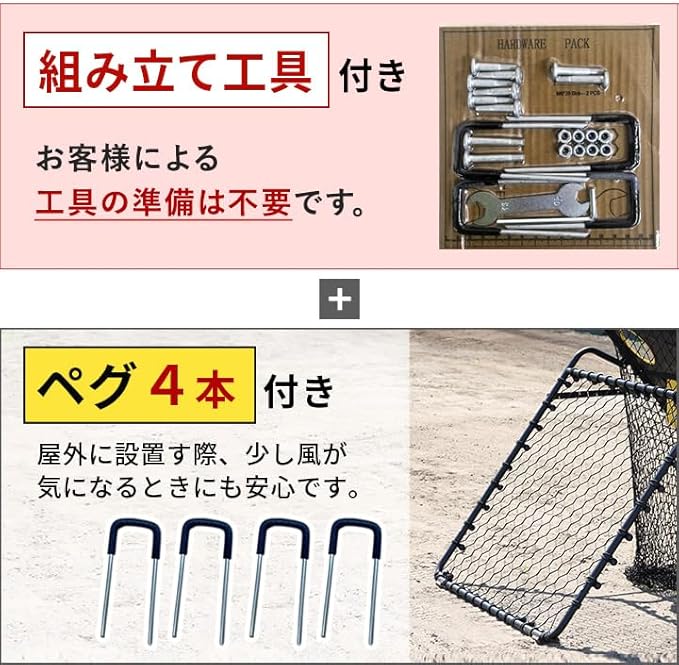 【ご注意・お願い】※こちらの商品はお客様組み立て品となります。工具は必要ありません。※検品は行っておりますが、万が一、ネットに劣化がある場合・明らかにサイズが足りないと感じた場合は、無理に組立を行わず、一度ショップまでご連絡ください。※ネットのサイズは跳ね返りを維持するためタイトな作りになっています。装着の際は、解説動画や取扱説明書をご覧になり、正しい手順で取り付けてください。※商品は、モニターによって色合いが異なって見える場合があります。 また、仕様・デザインは改良のため予告なく変更することがあります。
