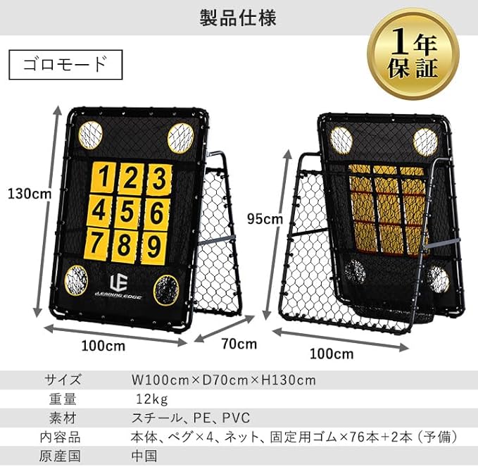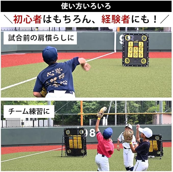 【1台2役!個人練習の決定版】⚾ピッチャー野球少年のお悩み「狙ったところに投げたい…」「家で練習したいけど、1人ではできない…」そんなお困りごとを解決!1台で投球・捕球、どちらも練習可能。従来品は、ピッチング・キャッチング、いずれか片方しか練習できないネットが一般的でした。当製品は、表面はストラックアウト、裏面はリバウンダーとして活用でき、ピッチングも捕球も両方練習が可能です。角度調整2段階。角度を変えるだけで、ゴロ・フライの切り替えが可能。角度調整も簡単です。