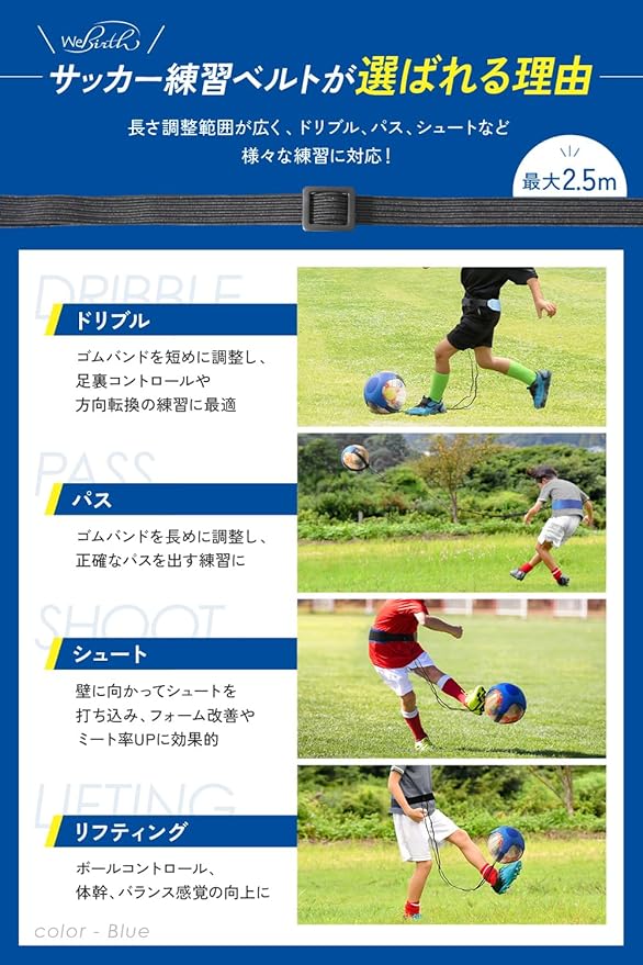 ⚽【実際の使い方】 長さを調節して用途に合わせてご使用いただけます。 リフティング練習: 短めの長さに調整し、リフティングの回数を増やしたり、バリエーションを増やしたりして練習できます。 ボールタッチ: ボールと足の触れる感覚を養う練習ができます。 リズムトレーニング: 音楽に合わせてリフティングすることで、リズム感を養うことができます。