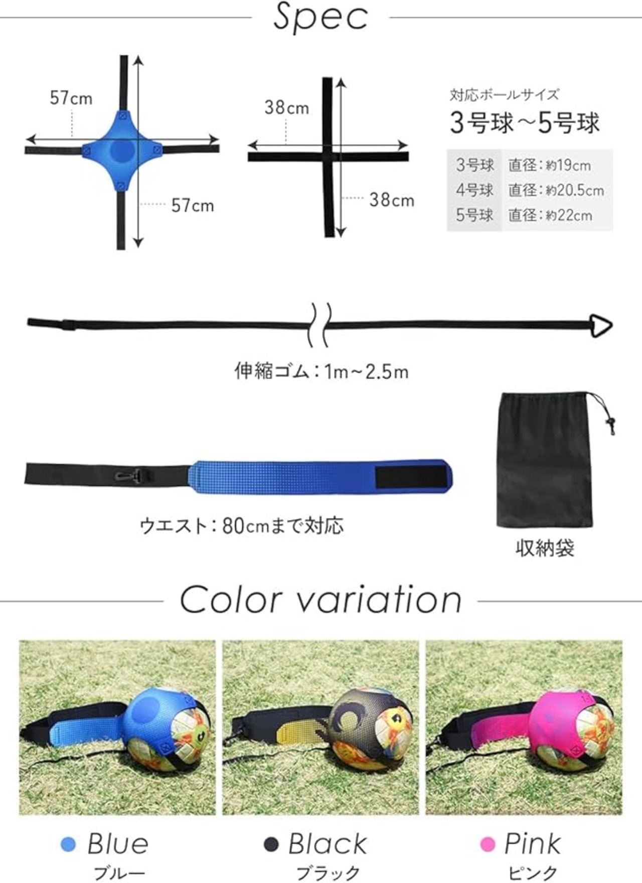 ⚽【豊富なカラーバリエーションと収納の便利さ】 お客様の声を聞き、ブラック、ブルー、ピンクの3色をご用意しました。お部屋のインテリアにも合わせやすいデザインです。 また、保管や持ち運びに便利な収納袋も付属しました。部活や体育館への持ち運びも楽々です。
