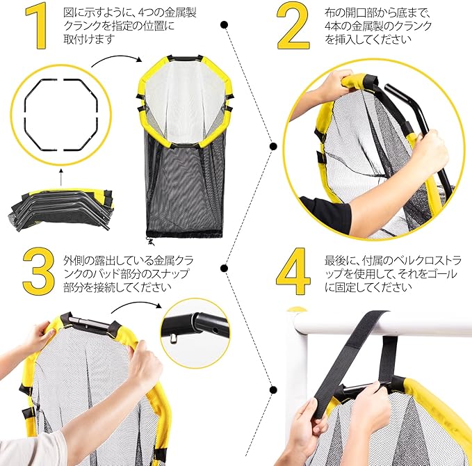 [取り付けやすい]2本のベルト(長さ58センチ、幅5センチ)が付いており、道具を必要とせずに2分でゴールフレームに固定することができる。 正確な訓練を迅速に行う。 目標エッジは600 D黄色編組テープで作られ、耐久性を向上させ、目標角が破断することなく持続衝撃に耐えることができるようにした。長期訓練に適しています。