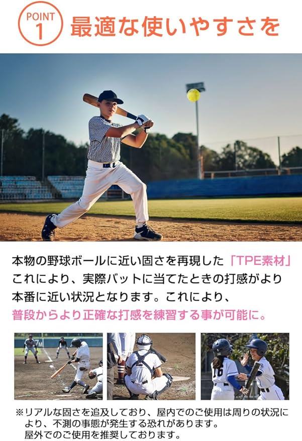 【野球 バッティング 練習用ボール】野球・ソフトボール用のトレーニングボールは、野外でご使用いただけますのでバッティング練習や試合前の打撃練習で使用可能です。