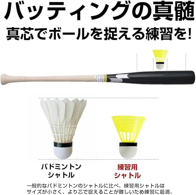 【芯をとらえる練習に最適】バドミントンシャトルより小さめのサイズで、バットの芯でとらえるトレーニングに効果的!