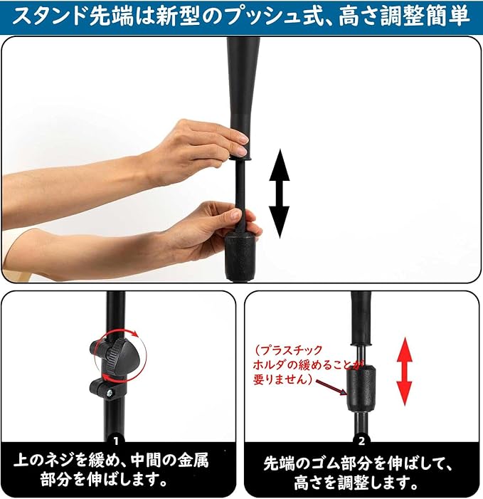 【細かい高さ調整が可能】ハンドル付きのボルトでしっかりと固定できるため、ゴムの力だけで固定している無段階式と違いズレにくくなっております。ストライクソ-ンは打者によって異なります高さ調整が可能なバツテイングテイ一なら体格に合わせて細かく調整できます。