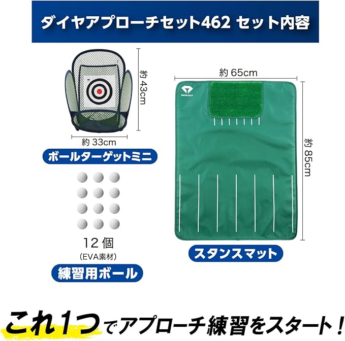 ダイヤゴルフ(DAIYA GOLF) アプローチ練習器具 ゴルフ練習ネット ゴルフ練習機具 練習用品 トレーニング器具 アプローチネット ターゲット ショートアプローチ 折りたたみ収納 コンパクト 室内練習 屋内 ベタピンアプローチ ダイヤアプローチセット462 (ゴルフ練習ネット&マット&練習ボール) 今平周吾プロ 若林舞衣子プロ TR-407 TR-462