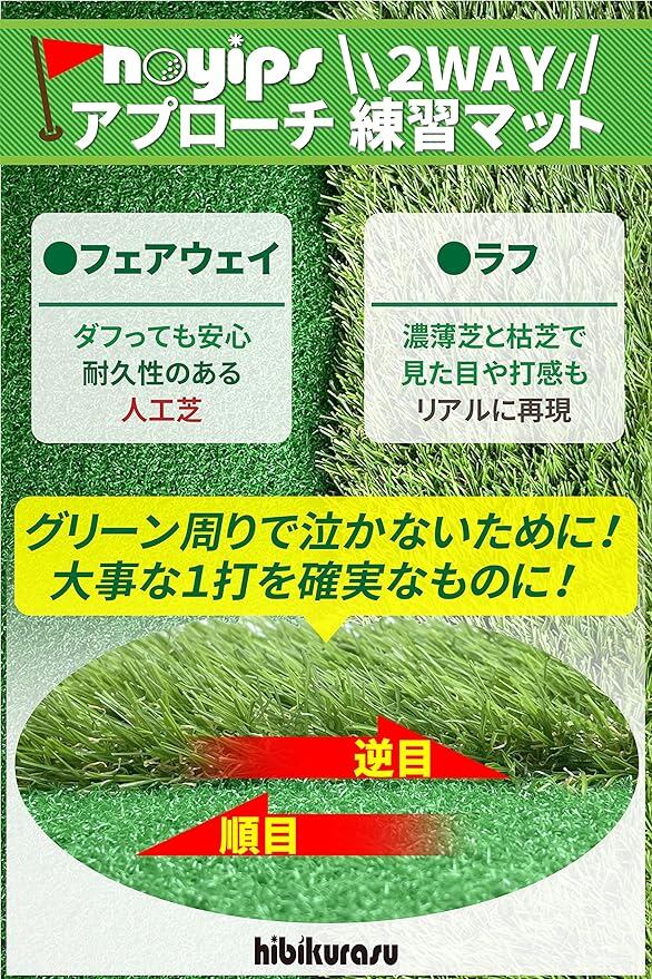 noyips ゴルフ アプローチ 練習 2WAY 芝生 マット 人工芝 ラフ 順目 逆目 + フェアウェイ チッピング チップショット hibikurasu GOLF