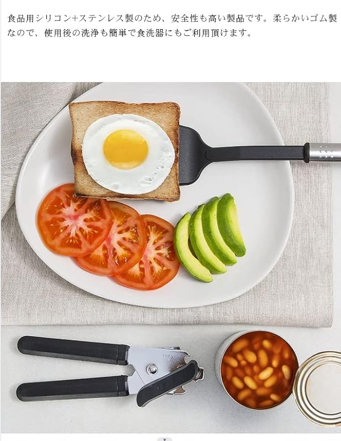 【高品質】 高品質なシリコン製で、柔らかくて鍋などに傷をつけることを心配する 必要がありません。変形・変色もしにくく、デザイン性と機能性が兼ね 備えたキッチンツールです。