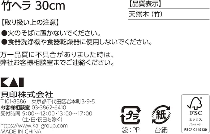 貝印(Kai Corporation) KAI 炒め料理 うらごし 便利 竹製 ヘラ スパチュラ 30cm KAI KITCHEN ベージュ DH8102