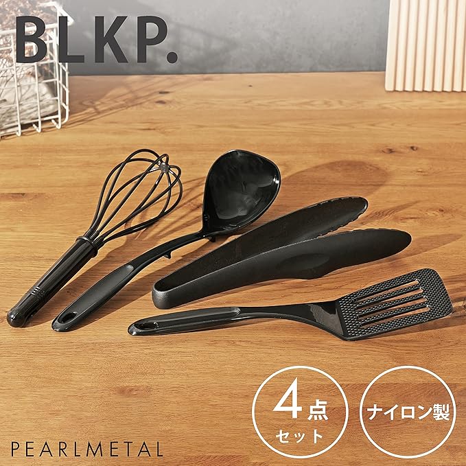 【BLKP】 パール金属 日本製 フライ返し / おたま / トング / 泡だて器 ナイロン キッチン ツール 4点 セット 限定 ブラック BLKP 黒 G-8126