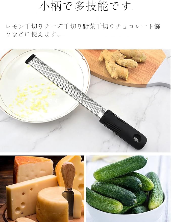 生姜やニンニクのすりおろし、固いチーズ、柑橘類の果物などに使われます。