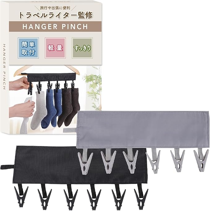 ピンチハンガー 【トラベルライター監修】(旅行のプロも認める便利グッズ) 洗濯ハンガー 旅行 洗濯 トラベル用品 リバイプロ (ブラック&グレー)
