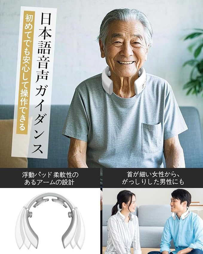 【日本語音声ガイダンス・100g超軽量コンパクト】日本語音声ガイダンス機能により、手元を見ずに操作できるので、機器が苦手な方でも気軽にお使いいただけます。音声ガイドはOFFにできるので、公共の場など音声ガイドが使いにくい場所でも全く気にする必要はありません。お年寄りの方も簡単に操作することができます。わずか100gの重さもコンパクトで持ち運びに便利。使い方は簡単で、心地良い効果を簡単に得られます。