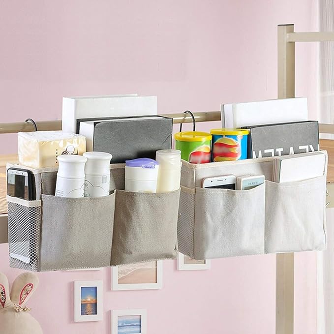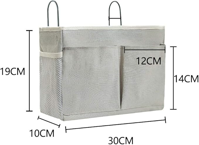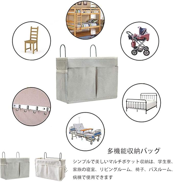 ベッドサイドポケット 吊り下げ収納 鉄骨フレーム 防水麻布製 多機能ベッドサイド収納ラック(入院グッズ/ベビーベッド/寮/車内用)小物入れ 耐久性 簡単取り付け 入院・介護時の必需品 (グレー)