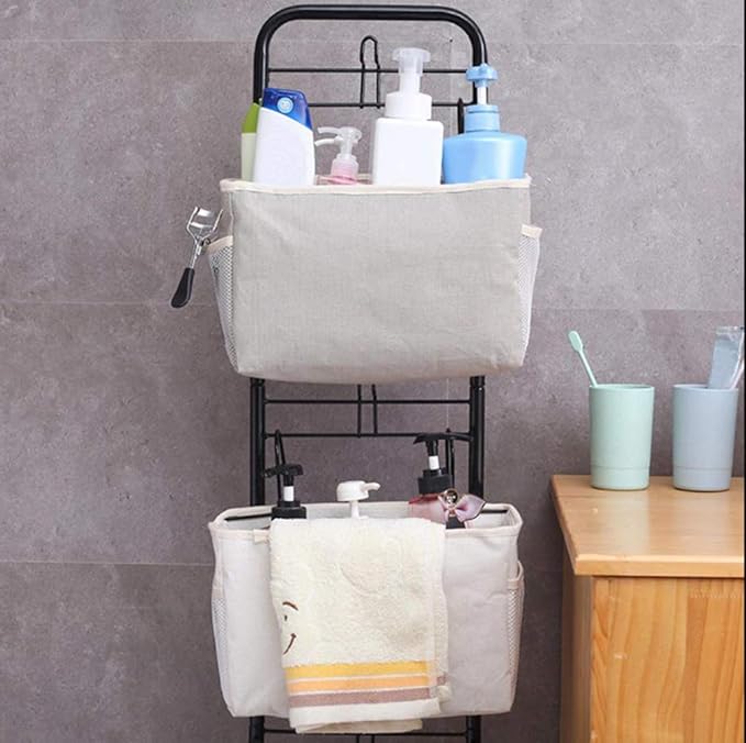 【省スペース設計でどこでもスッキリ収納】ベッドサイド 収納 吊り下げに最適なサイズ(約30 11 18.5cm)で、入院グッズやリモコン・ティッシュを収納可能。耐荷重8kgの鉄フック採用でベッドフレームやベビーベッド 収納 吊り下げにも安定固定。防水麻素材の軽量設計(180g)で車内やオフィスでの多用途使用に適しています。