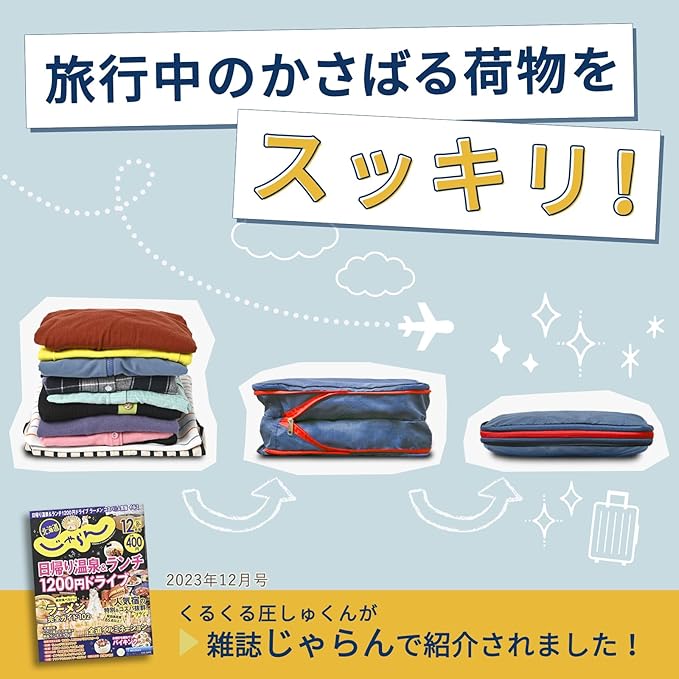 【様々なシーンで活躍】 旅行や出張だけでなく、衣替えでクローゼットの整理にも活躍します。畳んだ衣類をコンパクトに圧縮した状態で収納し、スーツケースや、クローゼットを綺麗に整理整頓できます。また、小物入れとしても利用可能で、アクセサリーや化粧品、電子機器などをまとめて収納することも可能です。