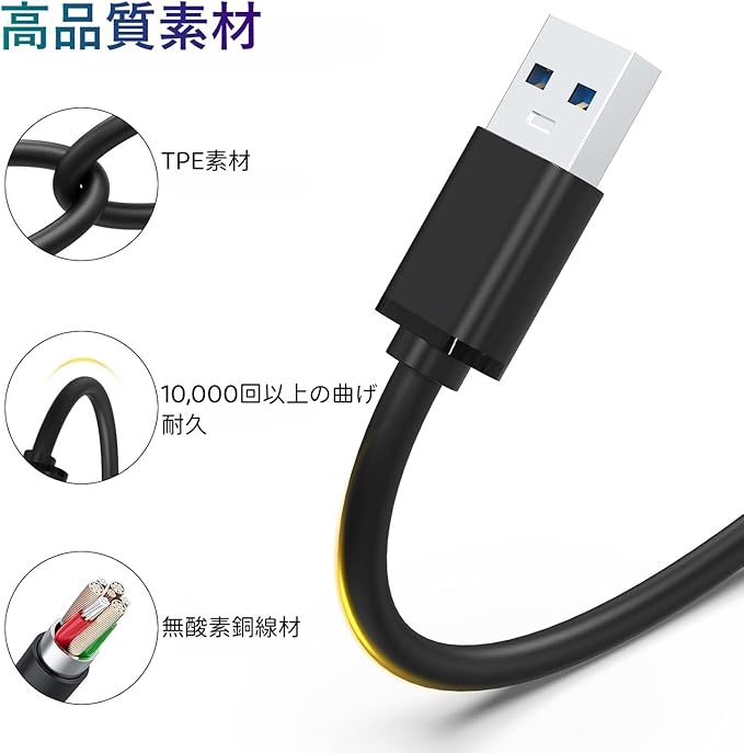 【高速充電 & 安定したデータ転送】USB 3.0に対応し、最大5Gbpsの高速データ転送が可能。さらに最大2.4Aの安定した充電に対応します(※接続デバイスおよび充電器の性能に依存)。