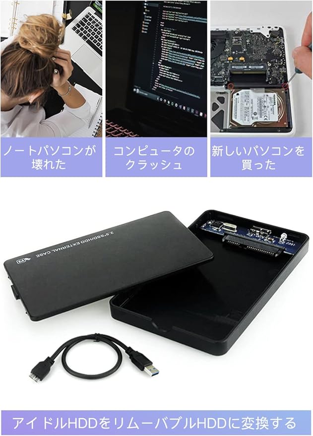 1.【高い互換性】限定商品のUSB3.0エンクロージャは、2.5インチHDD / SSD、Mac Windows Linuxに対応しており、最大4TBまで対応しています。機械HDD、TLC NANDやMLC NANDのSSDに最適です!※USBをパソコンに接続後LEDインジケータが光ります、USB未接続の場合、LEDインジケータが光らないです。