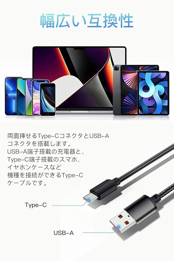 【卓越した耐久性】高耐久を持つ断線しにくいナイロン素材を採用し、丈夫 で丈夫で長寿命です。 コネクタは、90度の曲げ試験の少なくと も30000回に耐えることができる曲げやねじれによる損傷を減ら すために太いネックを持っています。