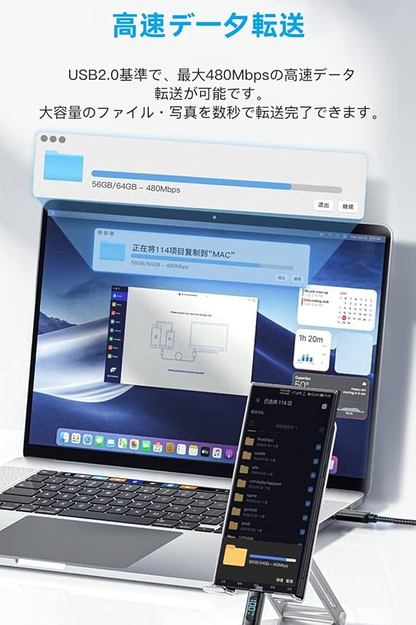 【100W超高速電力供給&高速データ転送】7A大電流、PD(PowerDelivery)充電に対応し最高100Wでの急速充電が可能です。 携帯電話、タ ブレット、ラップトップ、パワーバンクなどでの急速充電。MacBook Pro13 ''を2.5時間でフル充電します。USB2.0準拠で480Mbpsでのデータ転送が可能。PC、タブレット、スマートフォン間などでの写真転送が迅速に行えます。