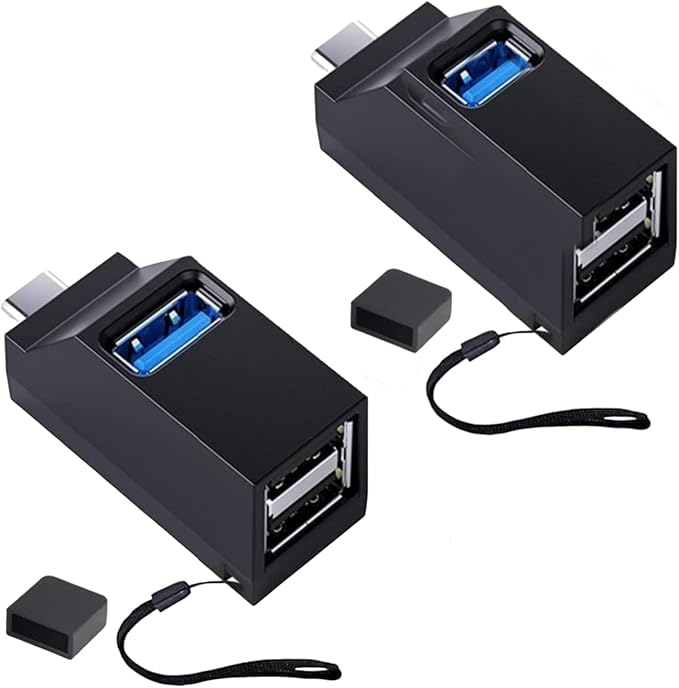 限定商品 Type-Cハブ 3ポート USB3.0+USB2.0コンボハブ 超小型 軽量 高速携帯便利 バスパワー 回転可能usbハブ USBポート拡張 高速データ転送 (黒、2個入り)