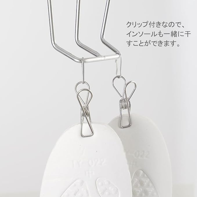 靴ハンガー 靴乾燥ラック シューズハンガー 2本セット クリップ付き ステンレス製 防風 滑り止め 空間節約 吊り干し シューズ水切り