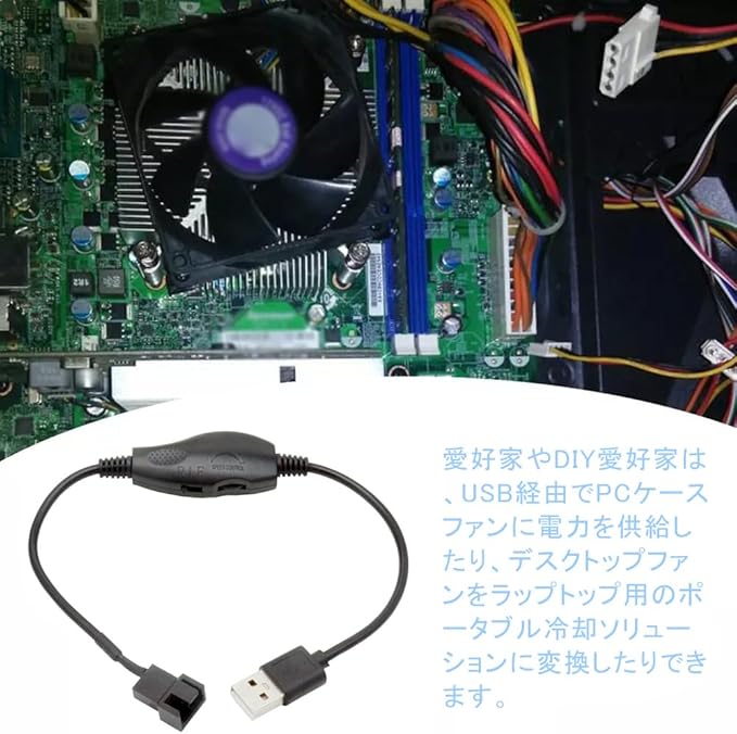 PCファンパワーアダプター USB スイッチケーブル USBから4pin 5V-12V 調整スイッチ付き コネクタコンバーター 安定 データ伝送 USB A - デュアル 3ピン/4ピン (黒色1)
