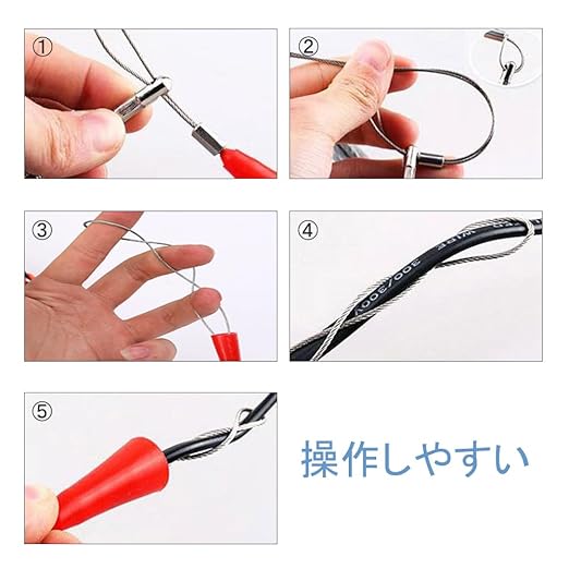 通線工具 電線通し 入線専用ワイヤー ロープ通し器 15M スチールワイヤー 結束ワイヤー リード線付き ジョイントワイヤー 電気工事 配線作業