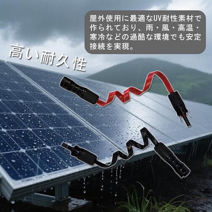 ☼商品仕様:2個セット、6mm (10AWG)、ケーブルサイズ:長さ約35cm。MC4コネクタ付きで工具不要のプラグアンドプレイ仕様。