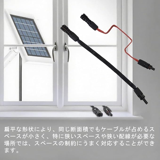 ソーラーケーブル 延長ケーブル ソーラーパネル接続 2本セット 35cm 10AWG (6mm ) 窓通しタイプ 超薄型 フラット折り曲げ可能 UV耐久 耐候性 屋外 家庭用 産業用 太陽光発電用