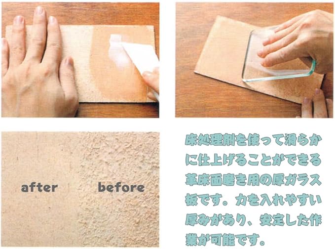 2.高品質のガラス製で、硬くて耐久性があります。床処理剤を使って滑らかに仕上げることができる革床面磨き用の厚ガラス板です。角は全て丸く処理しており、安全にお使い頂けます。
