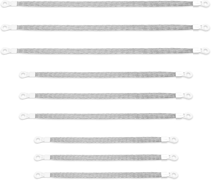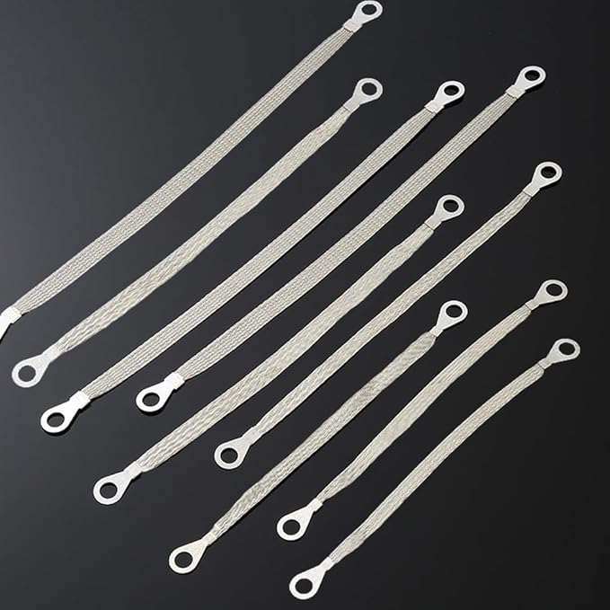 車用 マフラーアース フラット編組グランドストラップ 9本セット 200mm 250mm 300mm リング端子付き グラウンドストラップ 自動車用