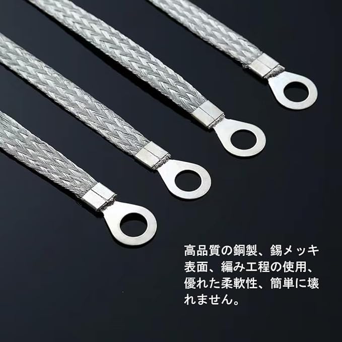 ♤この銅製アース線は、ほとんどの自動車接地線の適用や、分電箱接地、建物の接地、電気接地などに適用できます。