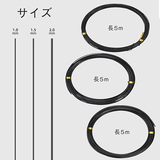 園芸用アルミ線 ワイヤー 針金 3個セット 1mm/1.5mm/2mm 長5m やわらか針金 結束 園芸 盆栽用 家庭菜園 ガーデニング用