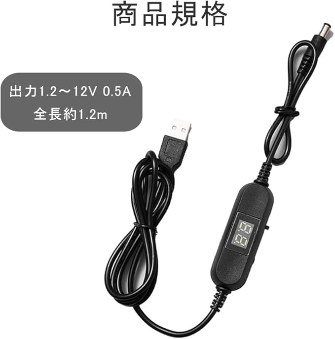 コネクタアダプタ 電圧調整ディスプレイケーブル USB 5V - 1.2V-12V USB ステップアップコンバーターケーブル LEDディスプレイ付き