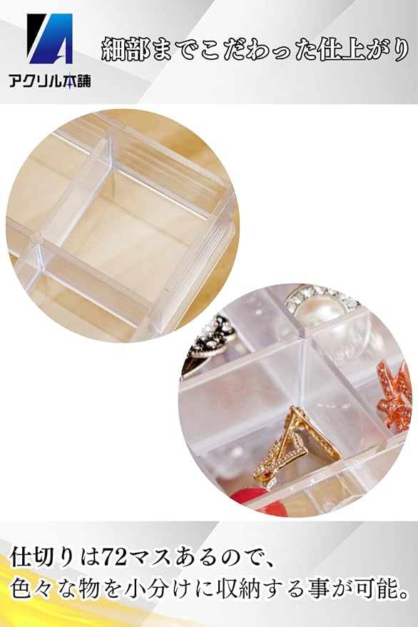 アクリル本舗 収納ケース アクセサリーケース ネイル ビーズケース 引き出し ビーズキャビネット 小物入れ パーツ 透明 (3段:72マス, クリア)