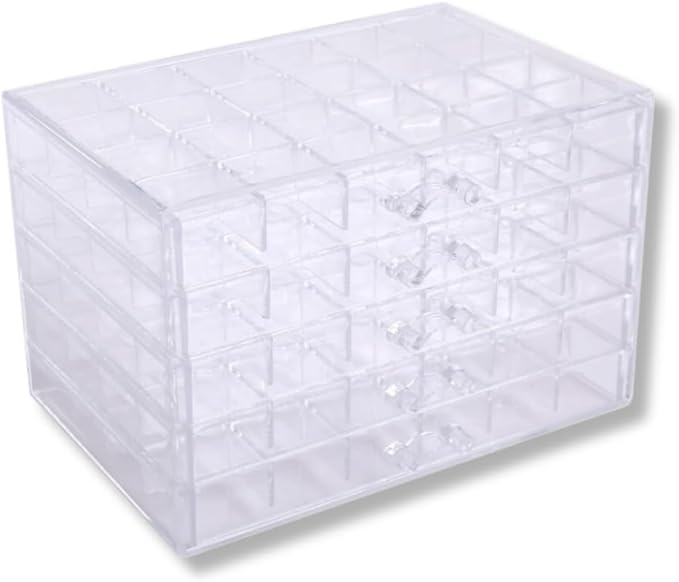 【ビーズキャビネット】透明のプラスチック素材のビーズキャビネットです。5段の引き出しに合計120箇所の仕切り付きです。耐久性のあるアクリル素材で質感がよく、細部まで精巧に作らせています。