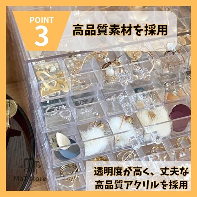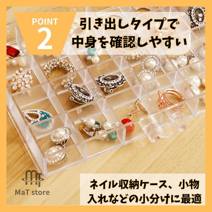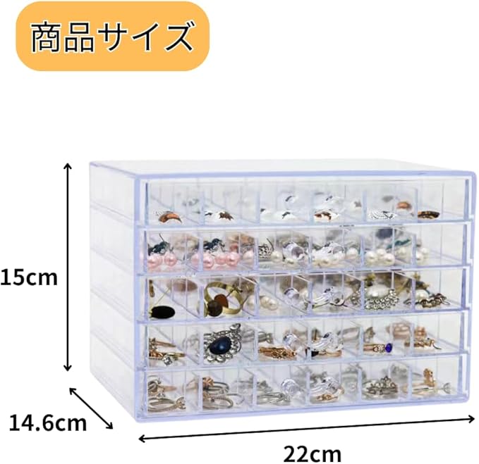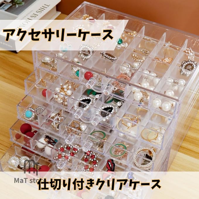 【幅広い用途】ピアスやアクセサリー、ビーズ、小物入れ等にご使用いただけます。また、透明度の高いケースなので引き出しを開けなくても中身が見え便利です。高品質素材を採用し、丈夫で長期間使用可能です。