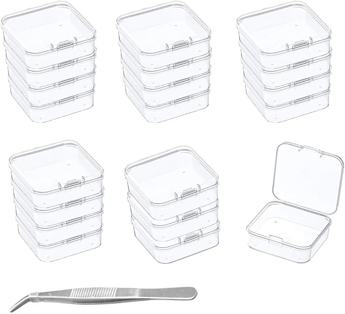 MOCOXYKLXY 小分けケース 20個セット 5.4*5.4*2cm アクセサリーケース 小物入れ 小物収納ケース プラスチック 正方形 透明 蓋付き ミニケース ビーズ収納 パーツ収納 薬ケース 耳栓収納 持ち運び便利 ピンセット1本