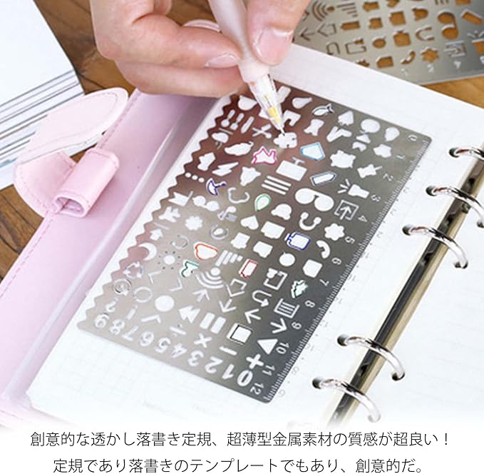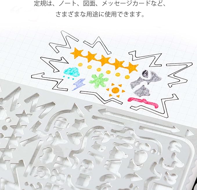 【幅広い用途】金属 テンプレート定規は落書き、ペイント、ハンドブック、マーキング、DIY制作などの分野に適しています。 勉強、仕事、創作のいずれの場合でも、私たちは利便性を提供し、あなたの生活をより便利で効率的にすることができます。