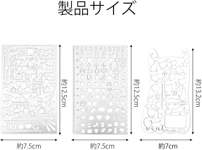 【パッケージ】3種類のテンプレート定規が届きます。 猫、魚、数字、数学のシンボル、矢印、幾何学、果物、その他多くのパターンが含まれており、子供たちのニーズを満たすことができます、自由に組み合わせて、想像力を働かせてユニークな作品を作ってください。