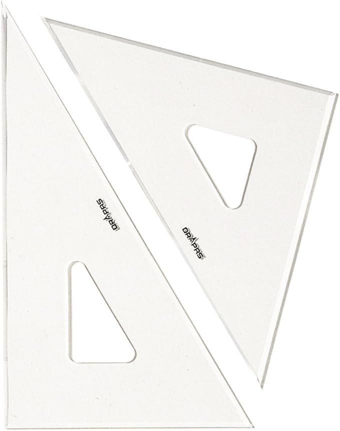 ドラパス三角定規は、透明度の高い硬質アクリル材を使用しています。板材から加工するので成型品によくある反りや歪みが少なく、特に角度誤差に優れた最高級の製品です。