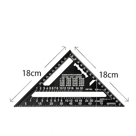 Beslands三角定規 木工用 丸鋸定規 18*18cm 両面目盛り アルミ合金 ブラック 分度器 建築 製図 大工道具 測量用品 0-90度 (ブラック)
