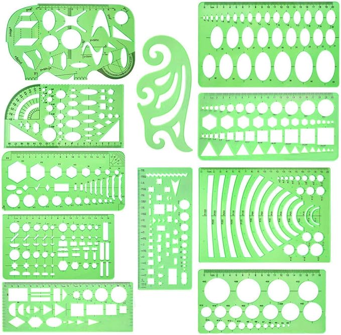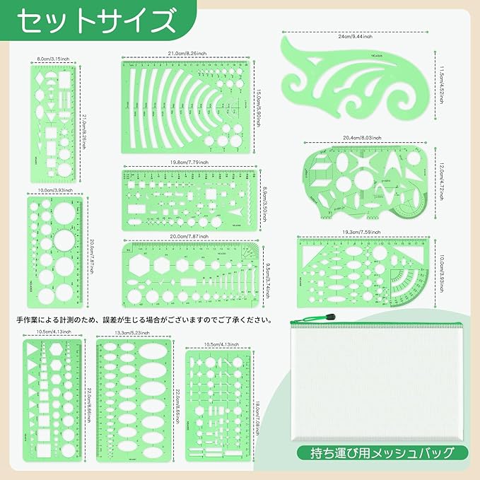 内容: 図面テンプレート11枚セット 円定規高品質プラスチック 目に優しいグリーン。このキットは大人向けです。